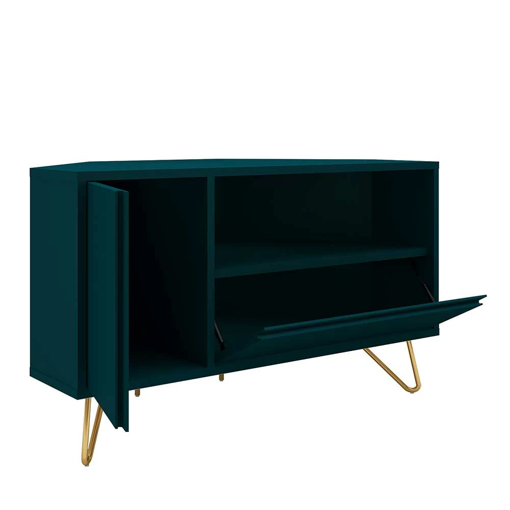 - Trendstarkes TV-Board Eckelement in Petrol und Goldfarben