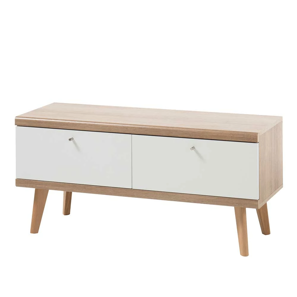 - Modernes TV Lowboard in Weiß und Eichefarben