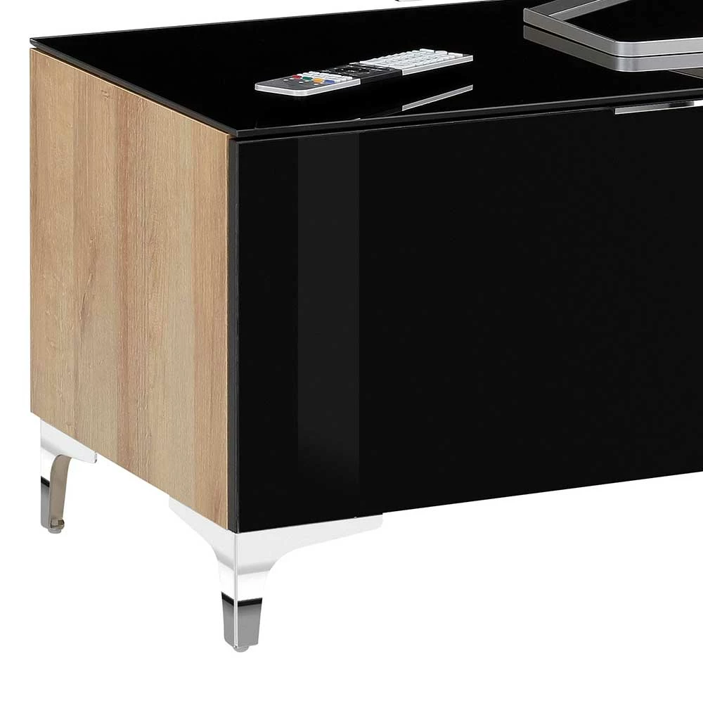 - Wirkungsvolles TV-Lowboard in Schwarz, Eichefarben und Chrom
