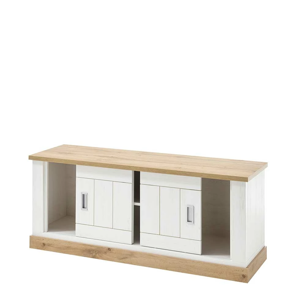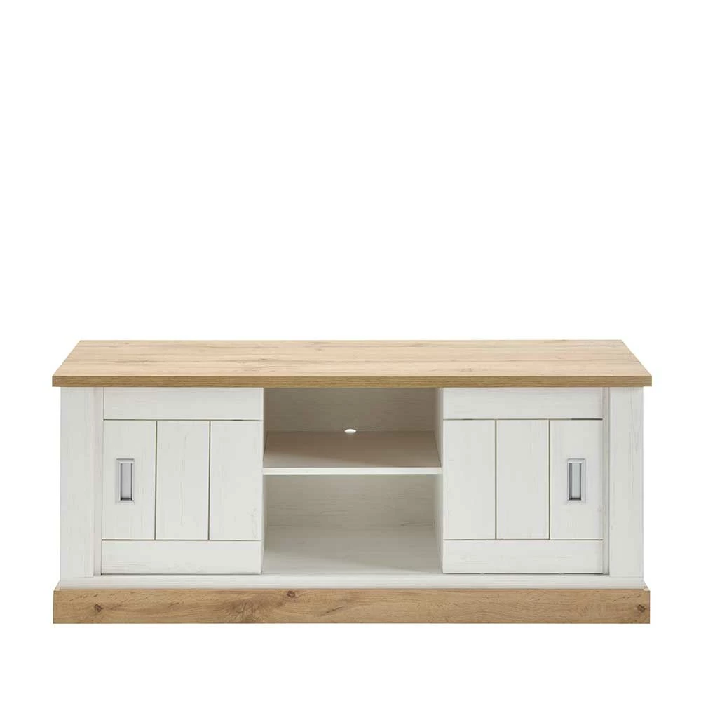 - Fabelhaftes TV-Lowboard in Pinie Weiß und Wildeichefarben