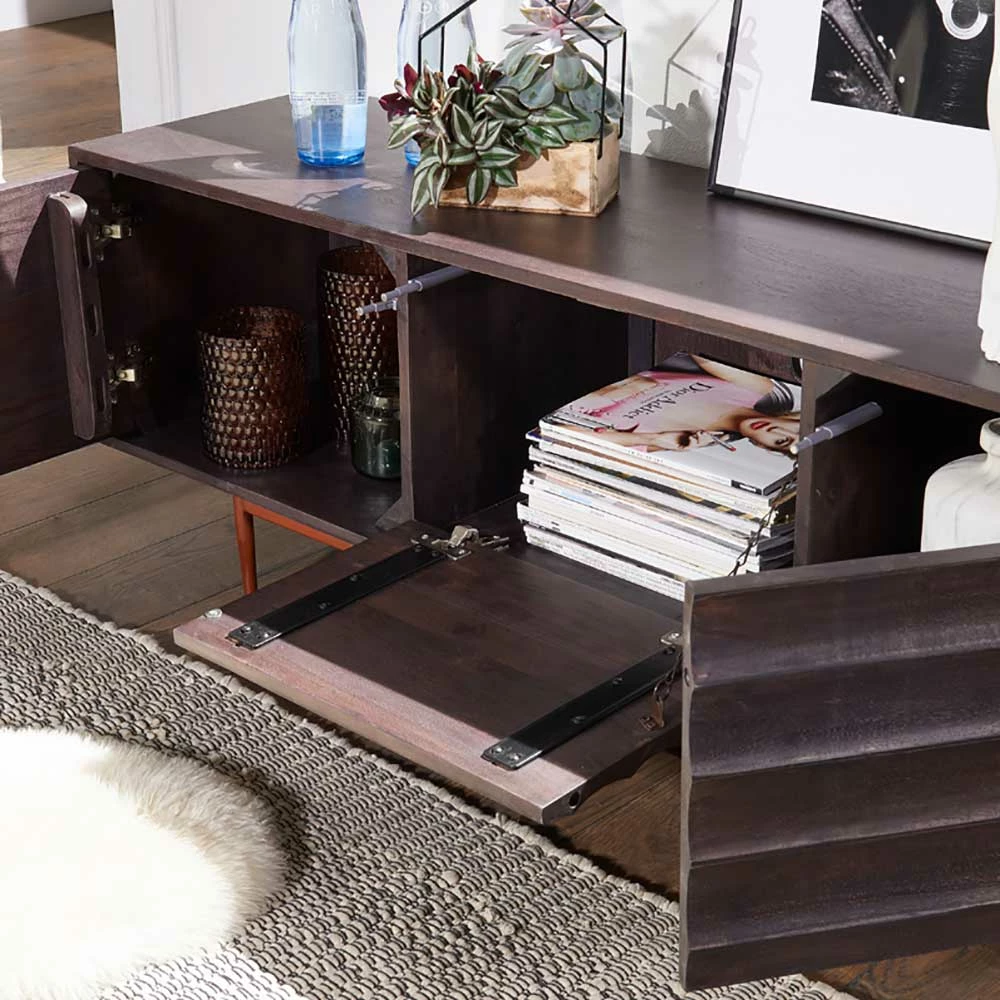 - Stilechtes TV-Lowboard in Braun und Kupferfarben