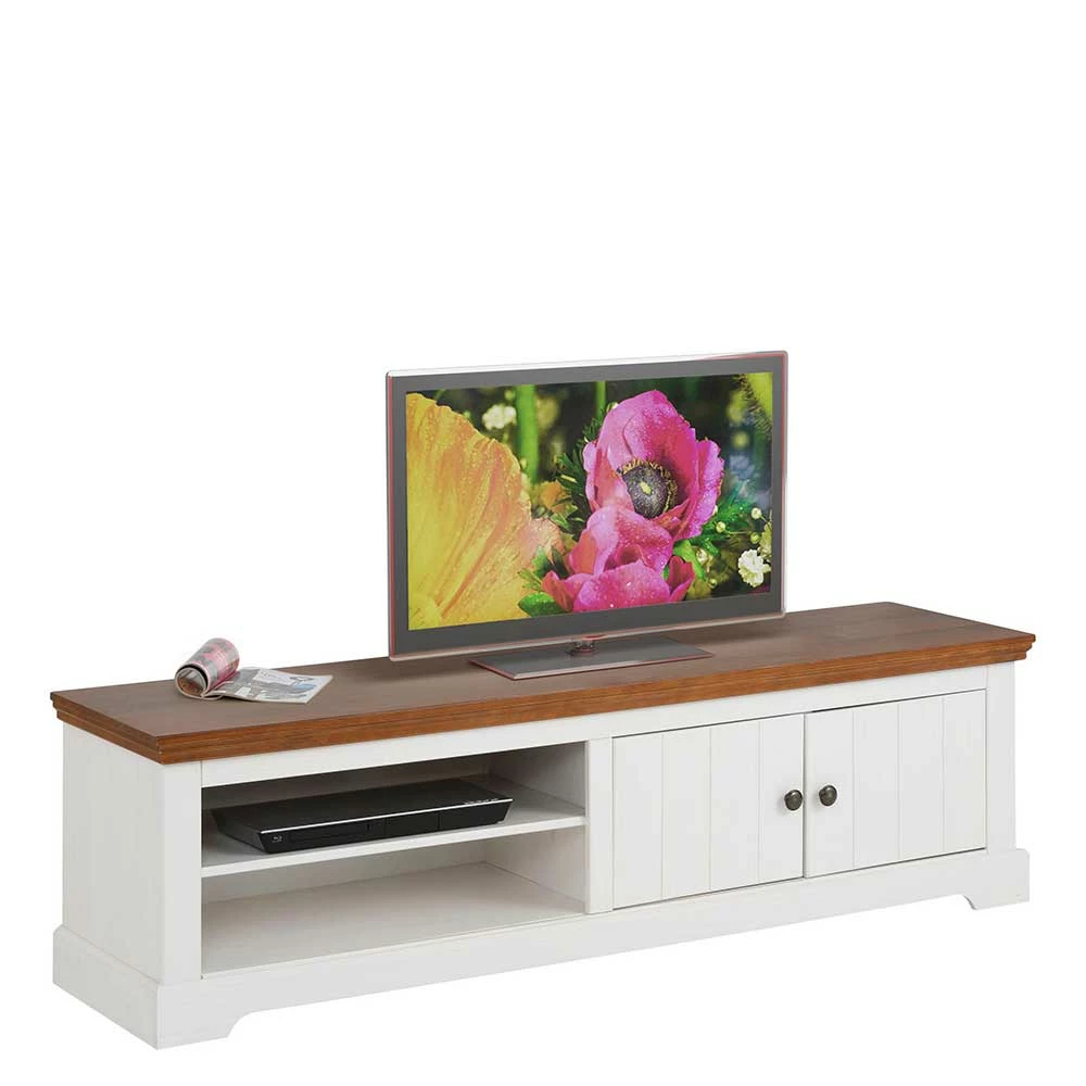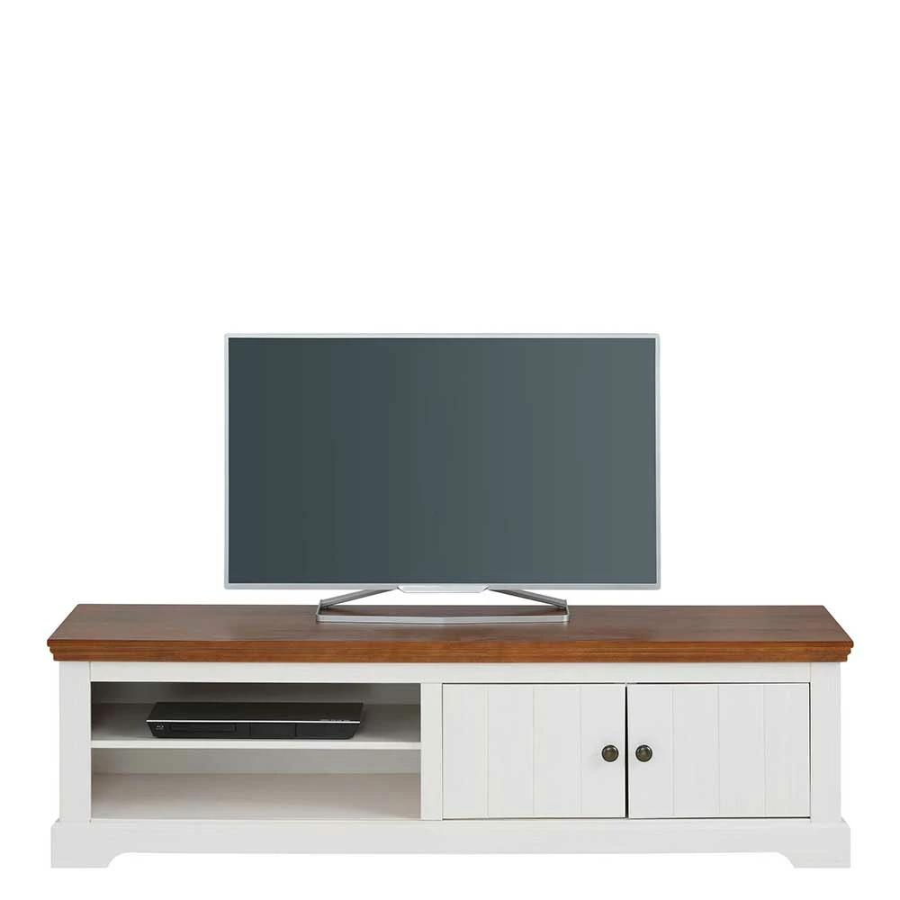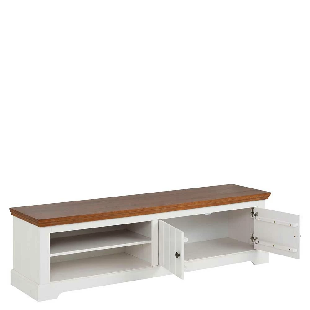 - Dekoratives TV-Lowboard in Weiß und Walnussbraun