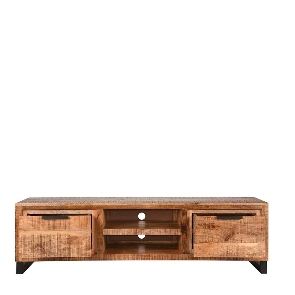- Apartes TV-Lowboard in Mangoholz Naturfarben und Schwarz