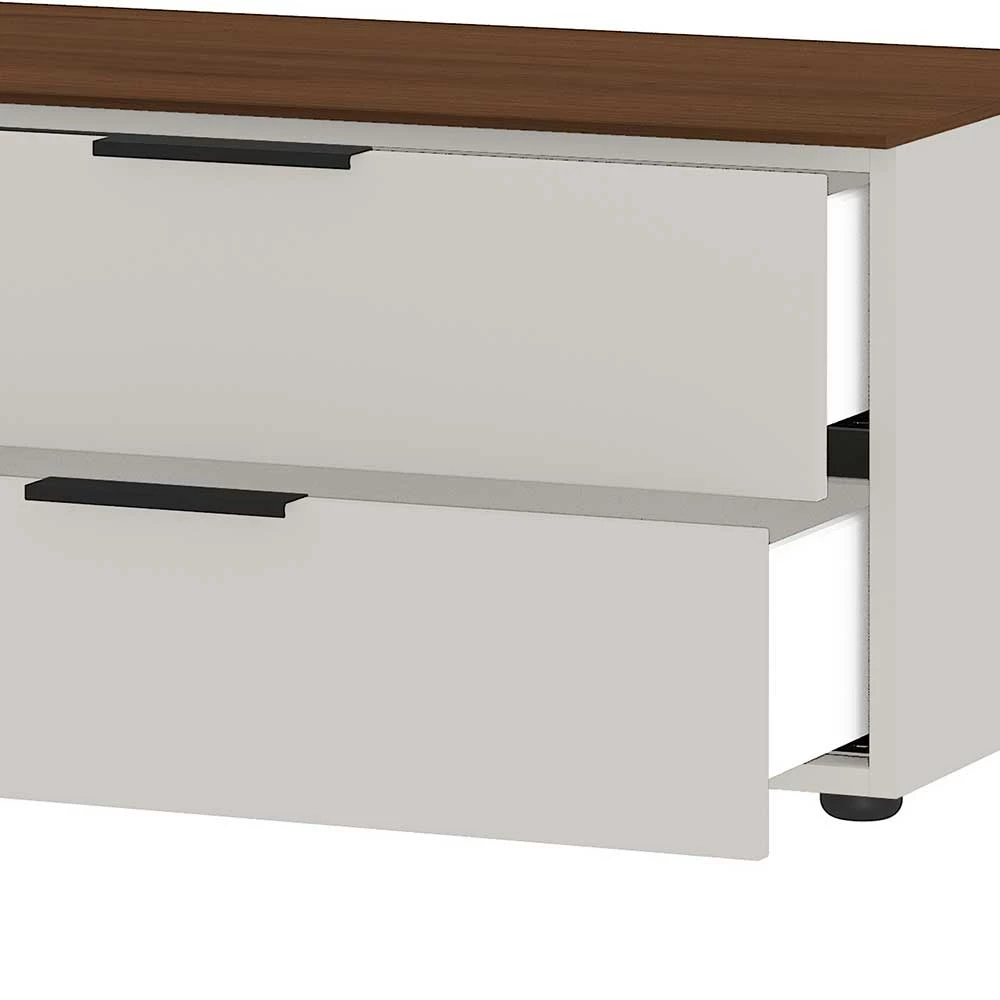 - Trendiges Lowboard in Hellgrau und Nussbaumfarben