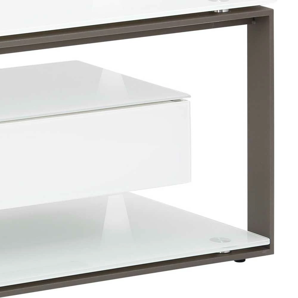 - Glasoberflächen in Weiß lackiert, Rückwand und Rahmen aus Metall in Anthrazit pulverbeschichtet
