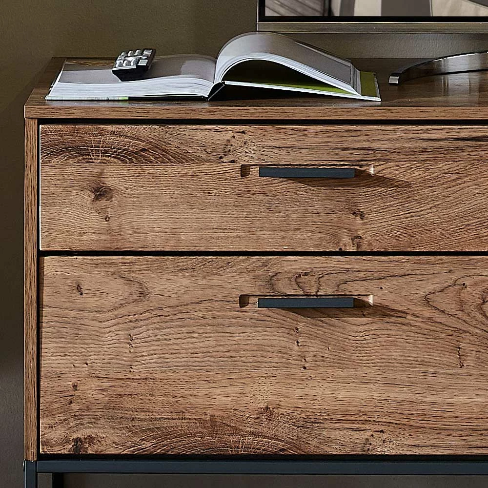 - Großzügiges TV-Board in Eiche dunkel und Dunkelgrau