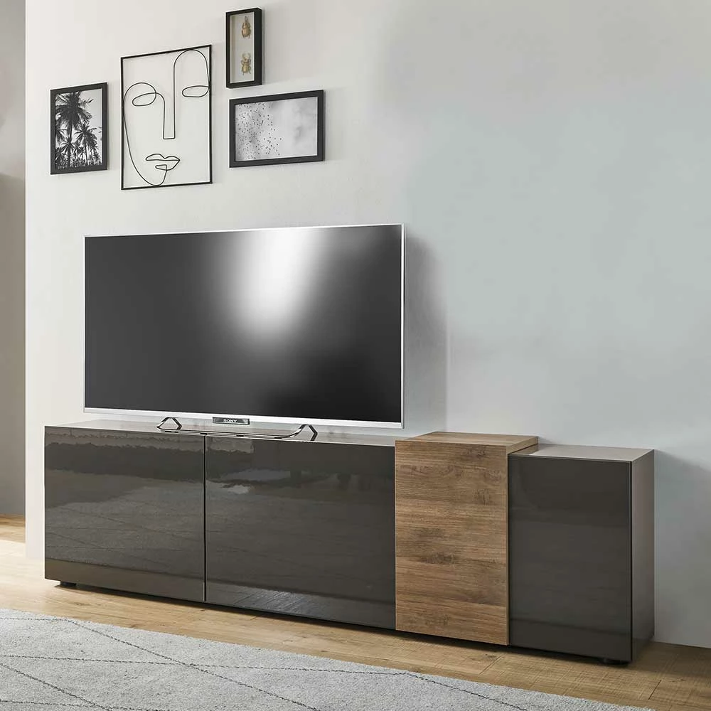 - Trendstarkes TV Lowboard in Dunkelgrau und Eichefarben