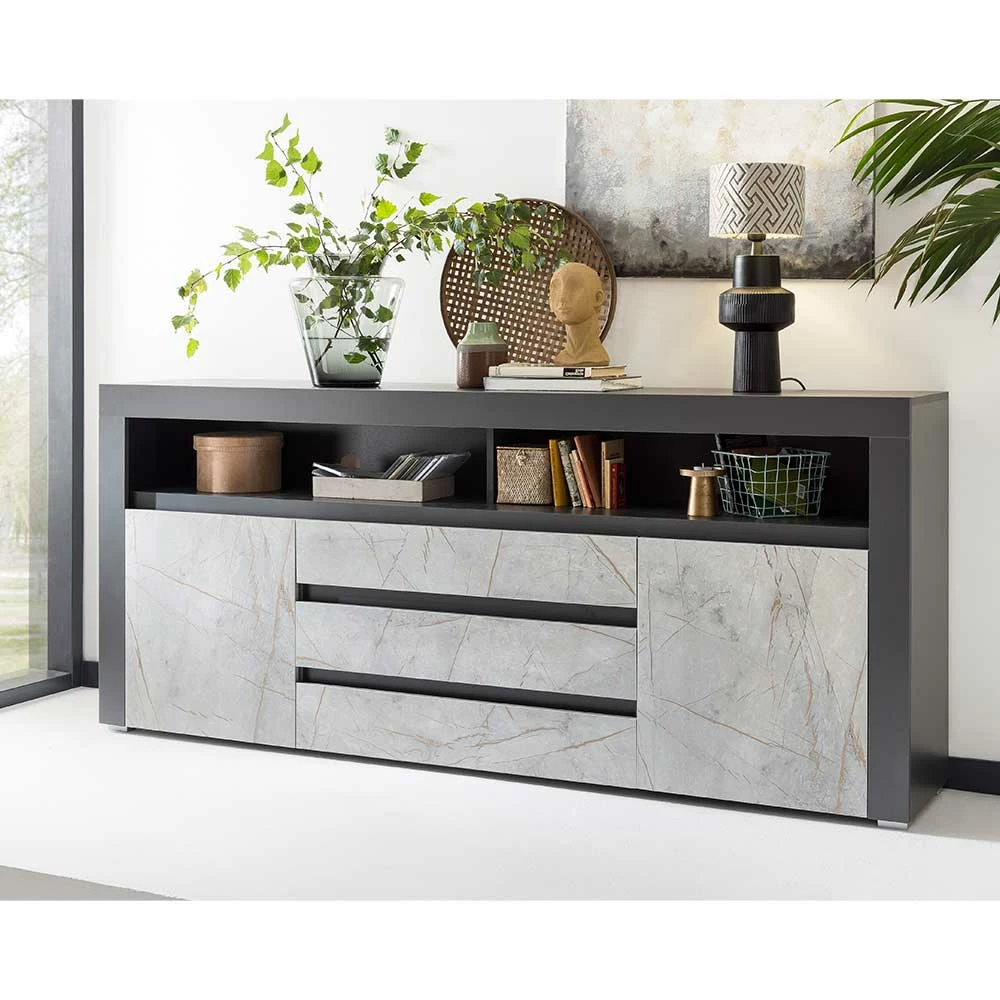 200x85x38 Design Sideboard In Marmoroptik Grau – Carsuva