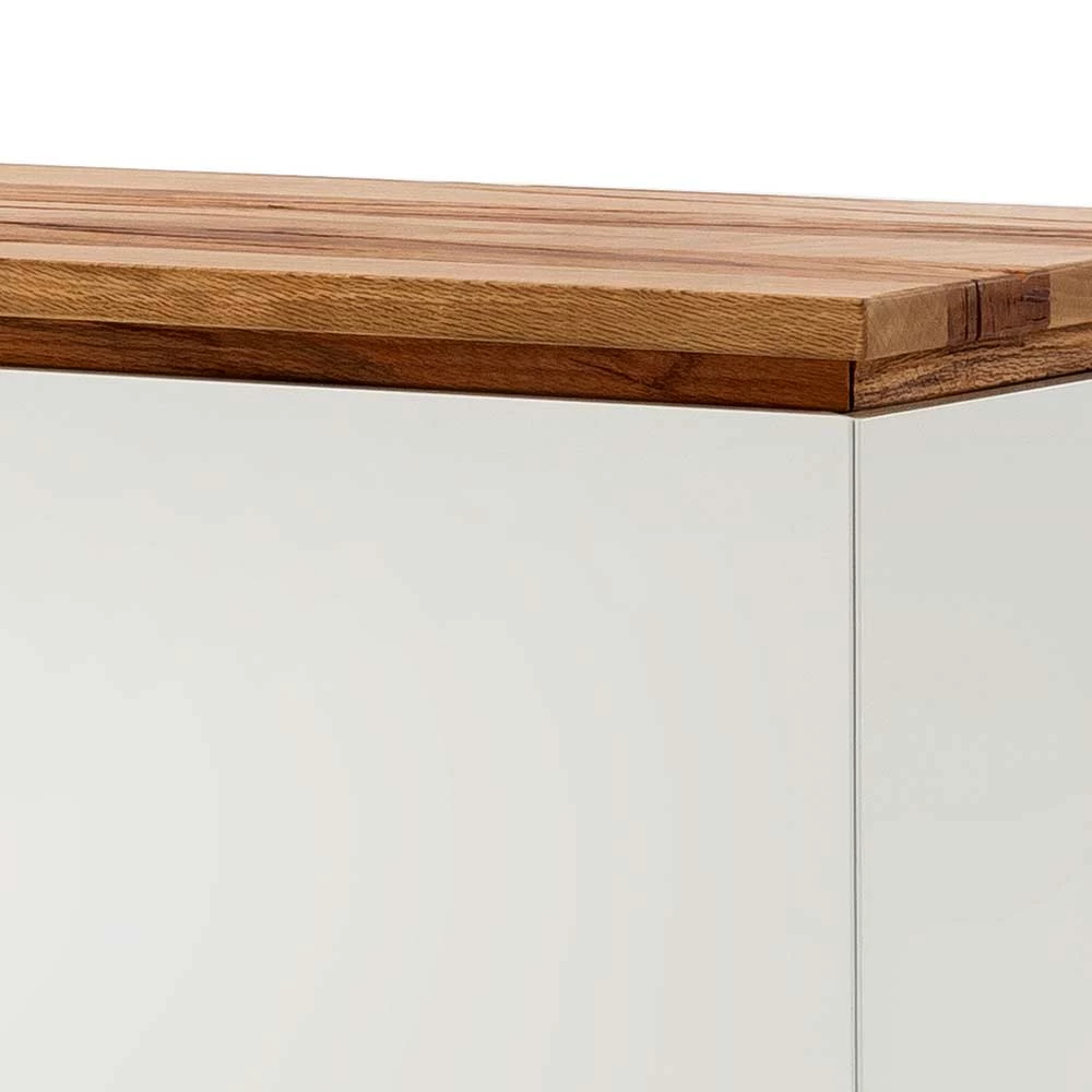- Oberfläche in Weiß matt lackiert, Oberboden und Sockel aus massiver, geölter Asteiche