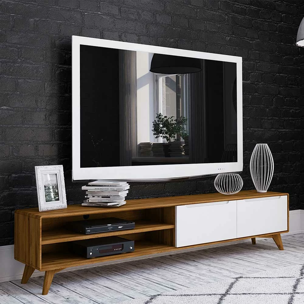 220 Cm Langes TV Lowboard In Wildeiche Mit Weiß – Diesta I