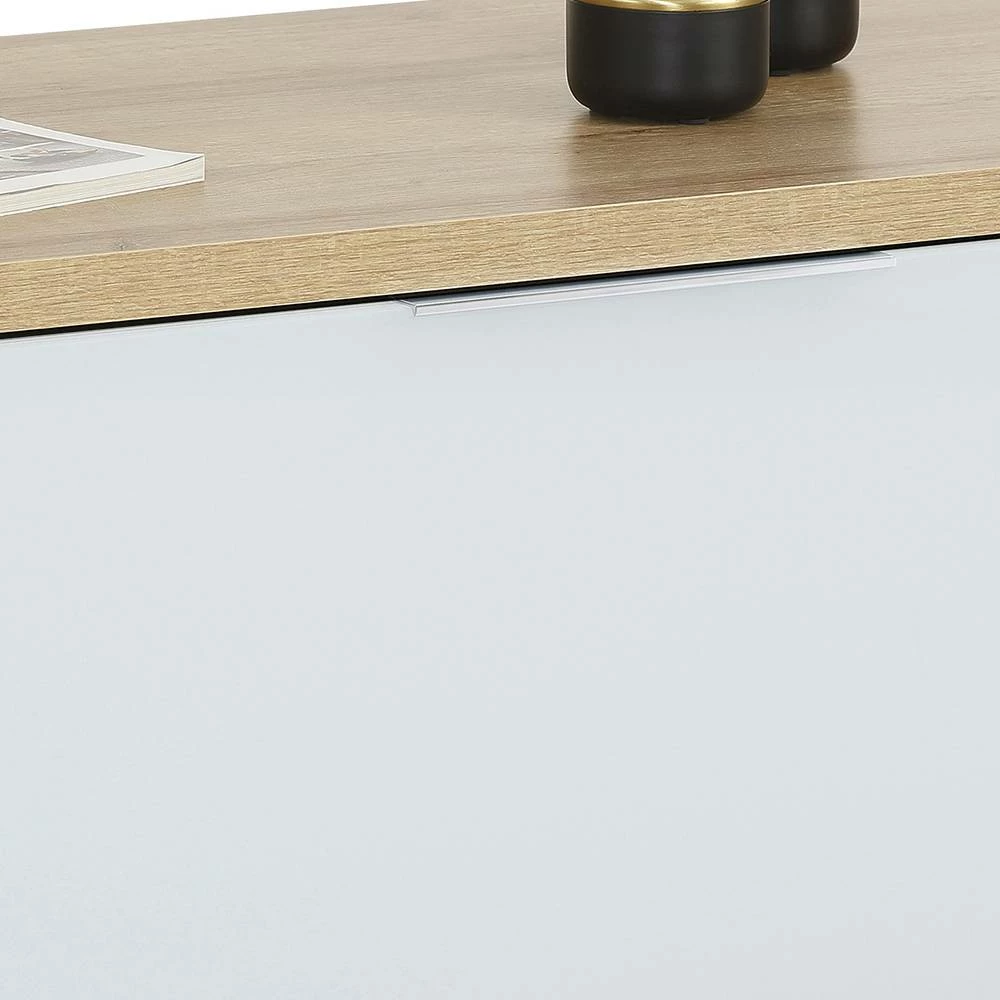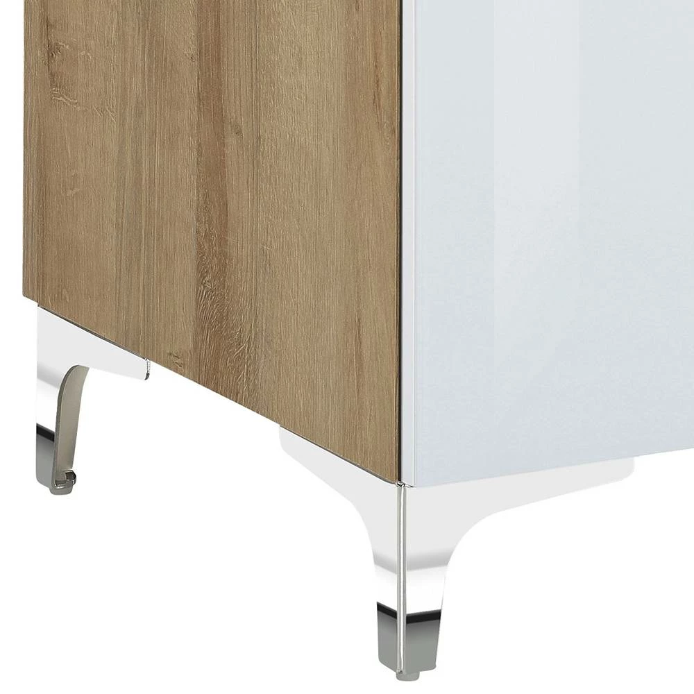 - Exklusive Kommode in Weiß, Eichefarben und Chrom