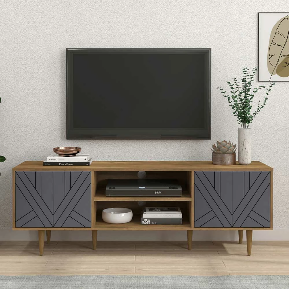 Design Lowboard Für TV In Grau & Natur – Ascolano