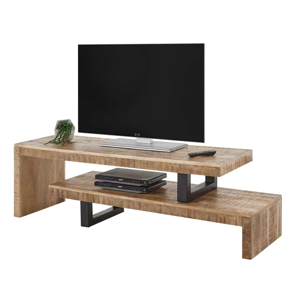 - Stylisches TV-Board in Mangoholz Naturfarben und Schwarz