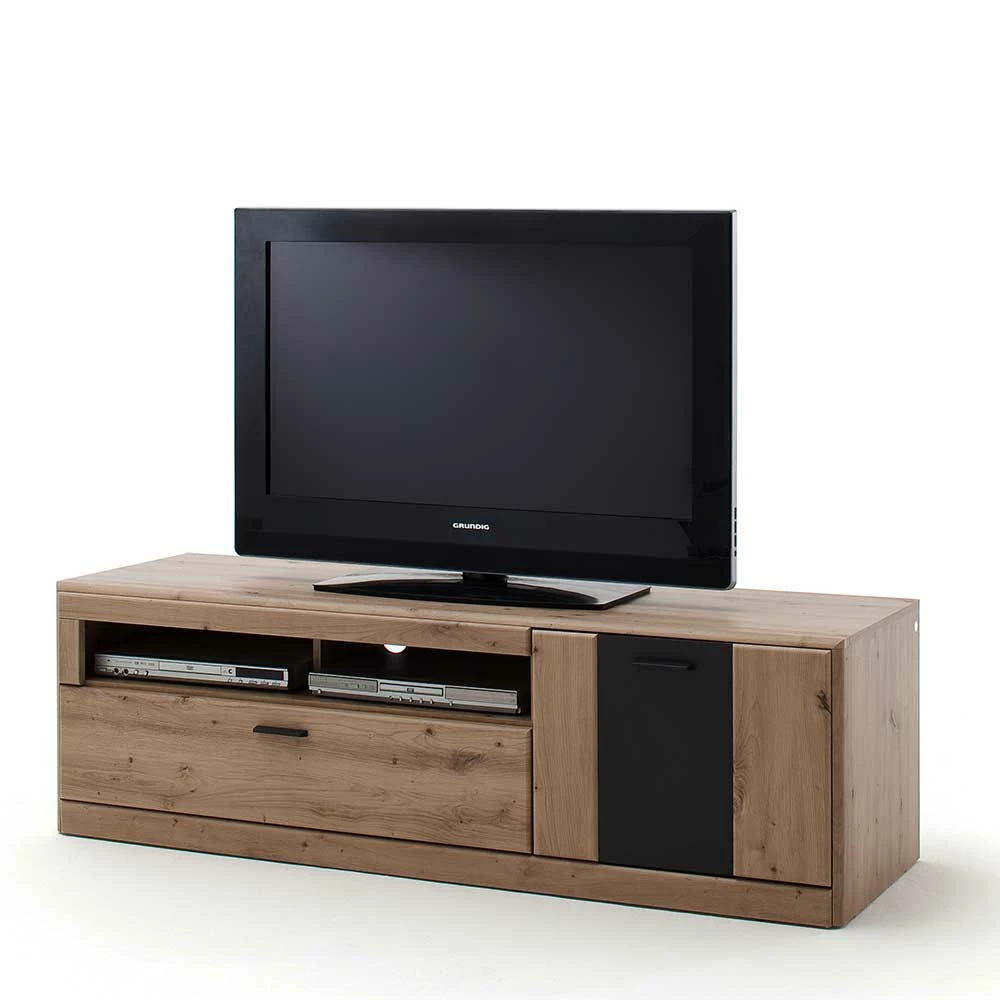 - Charismatisches TV-Board in Eichefarben und dunkel Grau