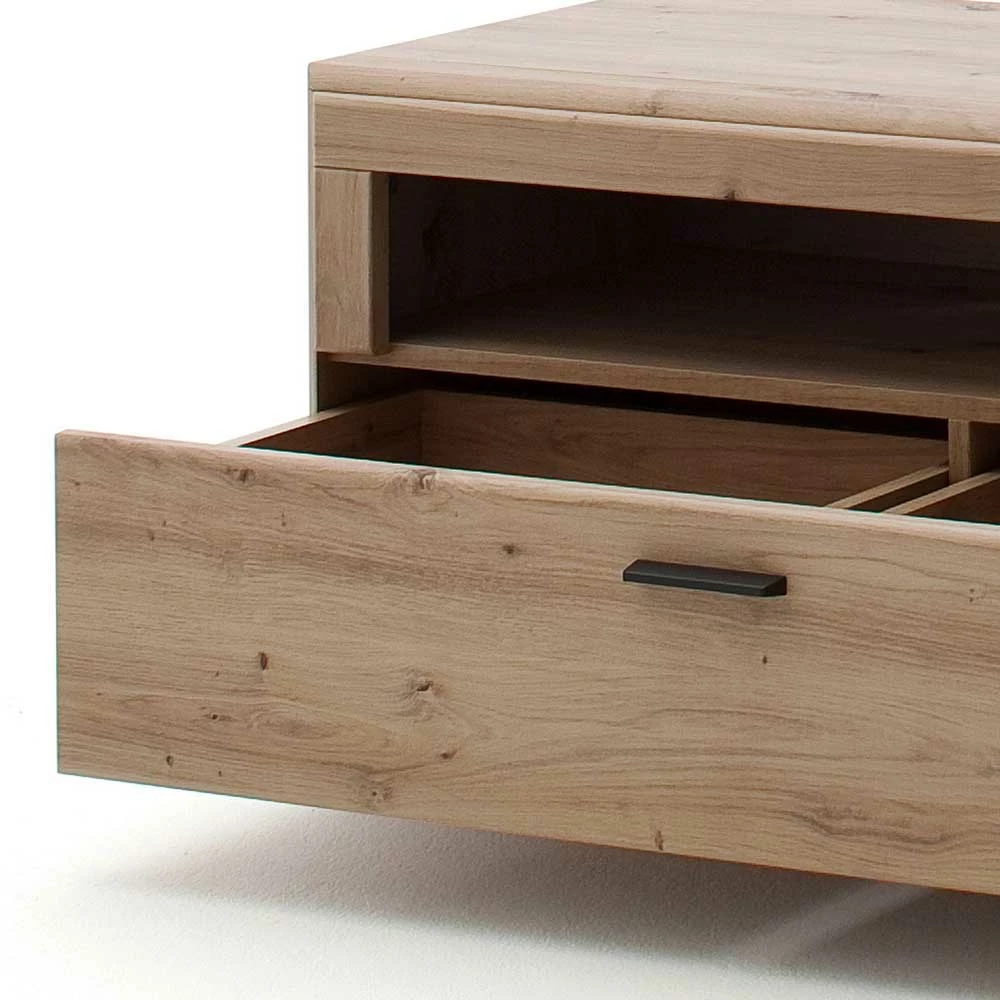 - Eine Schublade, innen zwei Fächern (Innenmaße je Fach: BxHxT: ca. 45x13x39 cm), Metall-Unterflurführung und Softclose-Funktion