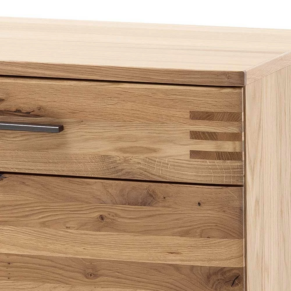 - Gefertigt aus Balkeneiche Massivholz (Front) und Spanplatte (Korpus)