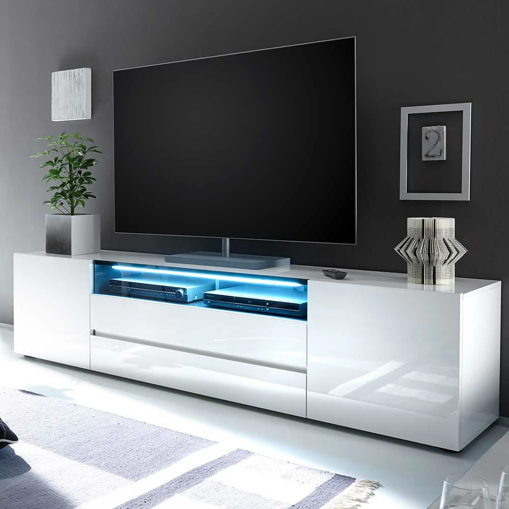 Hochglanz Lowboard Für TV In Weiß – Peritos