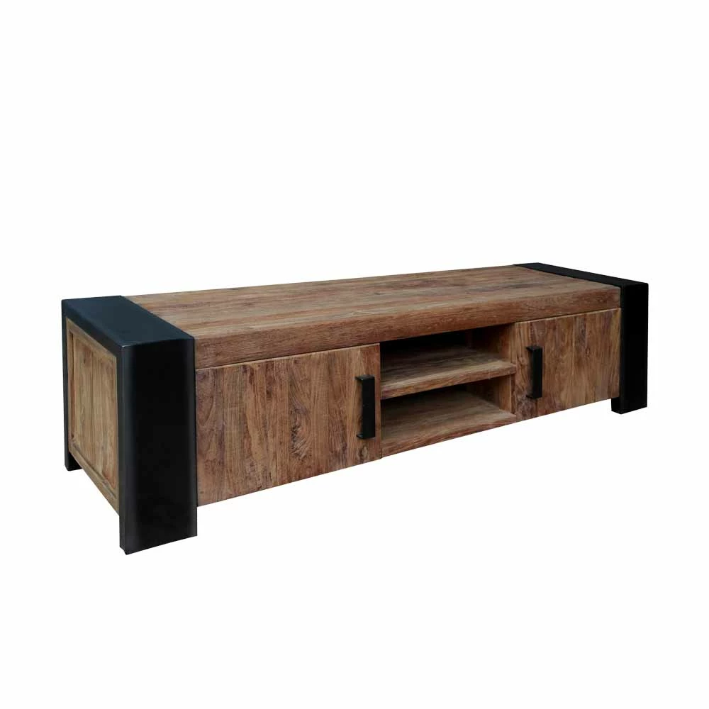 - Kantiges TV-Lowboard in Teak Antik und Schwarz