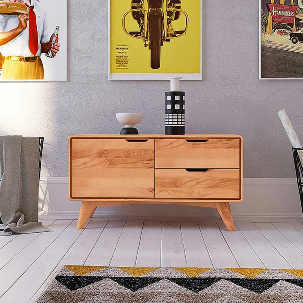 Kernbuche Lowboard Mit Zwei Schubladen – Junola I