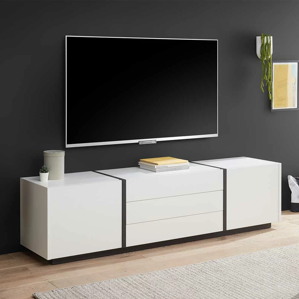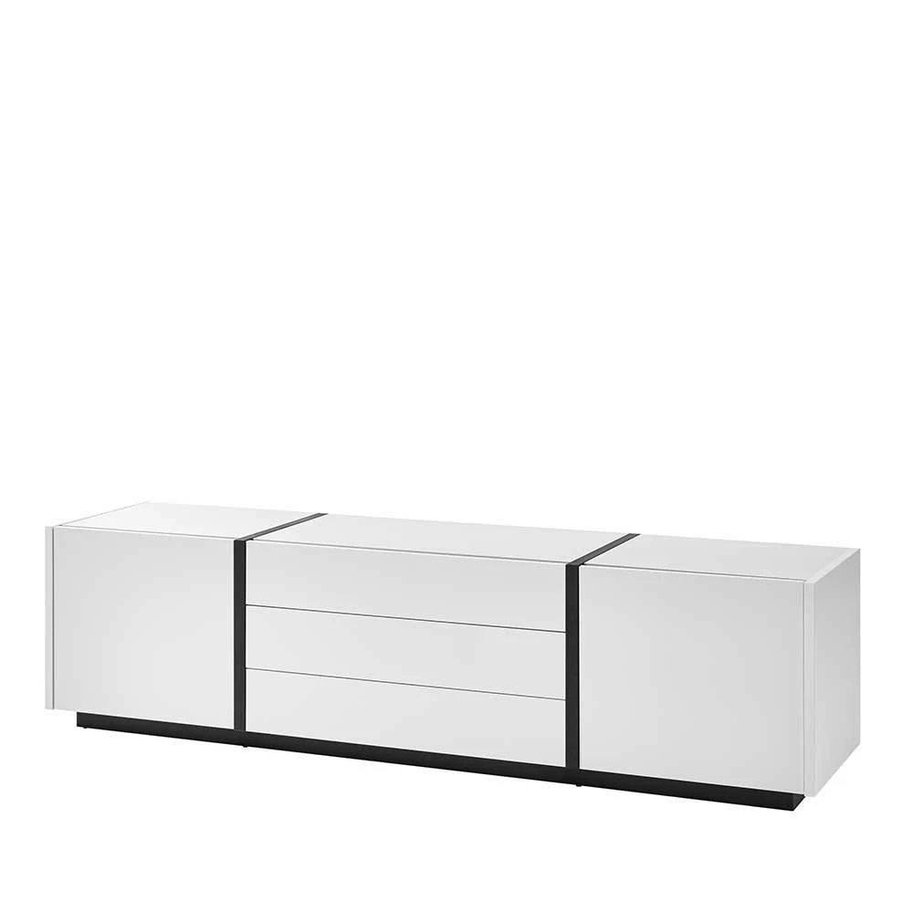 - Attraktives TV-Lowboard in Weiß matt und Schwarz