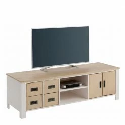 - Stylisches TV-Board in Kieferfarben und Weiß