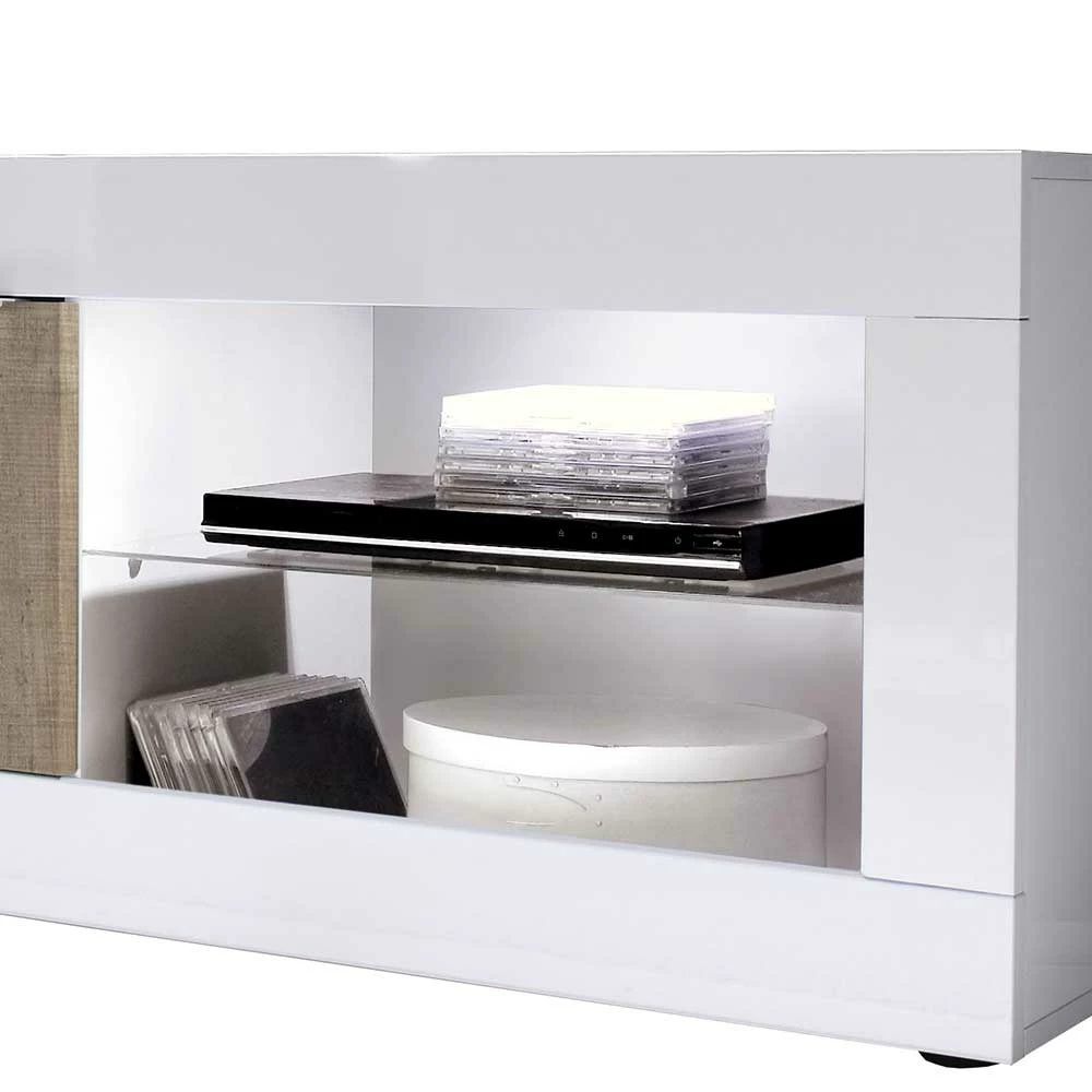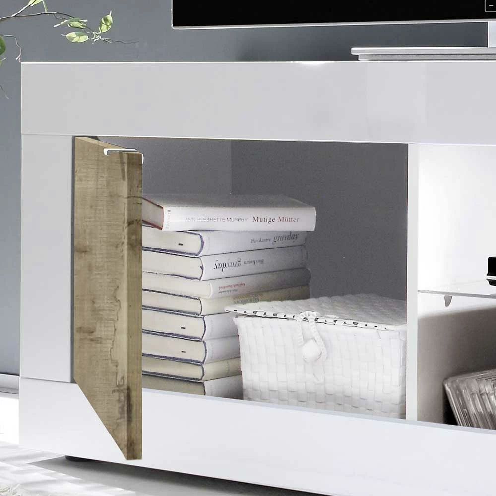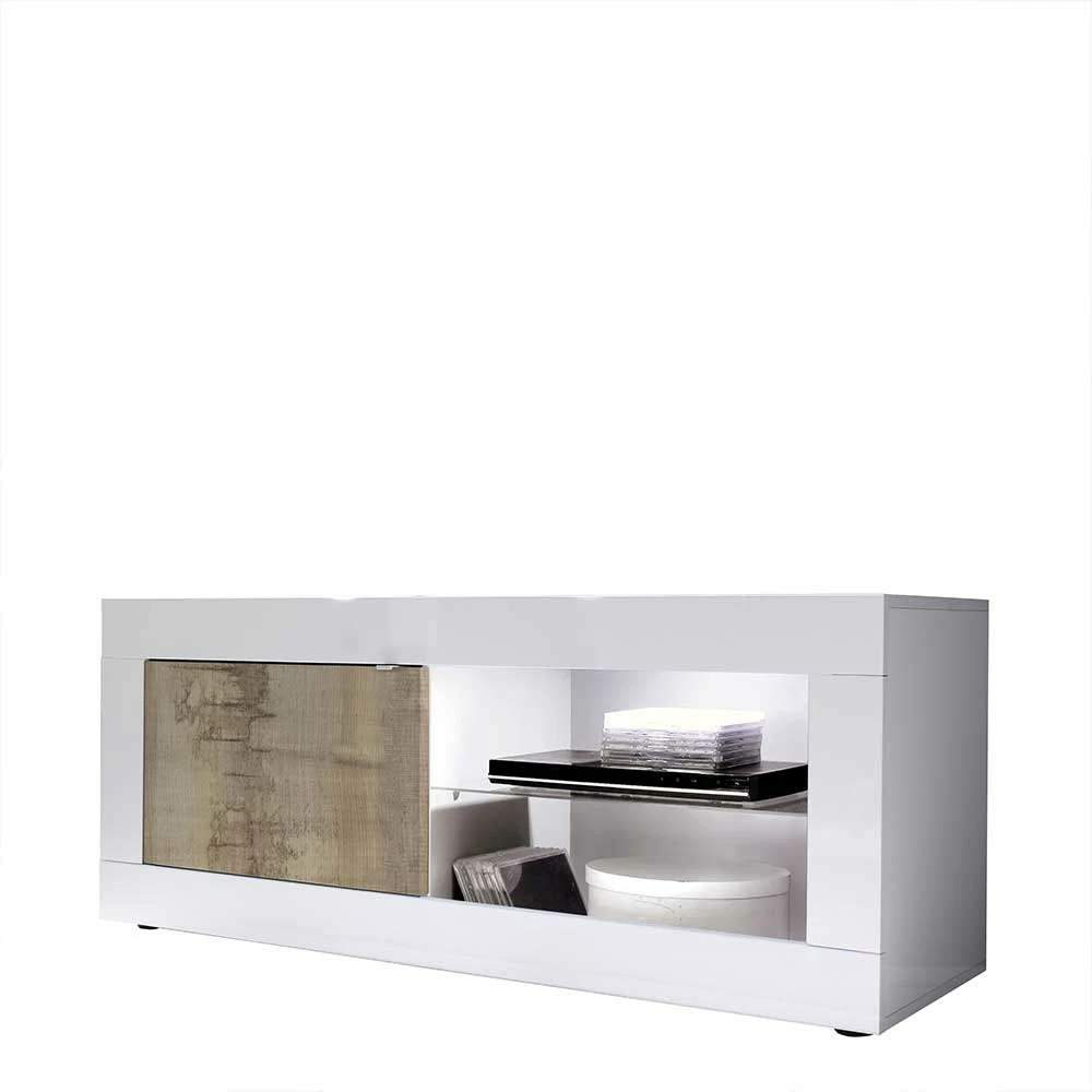 - Frisches TV-Lowboard in Weiß und Altholz-Optik