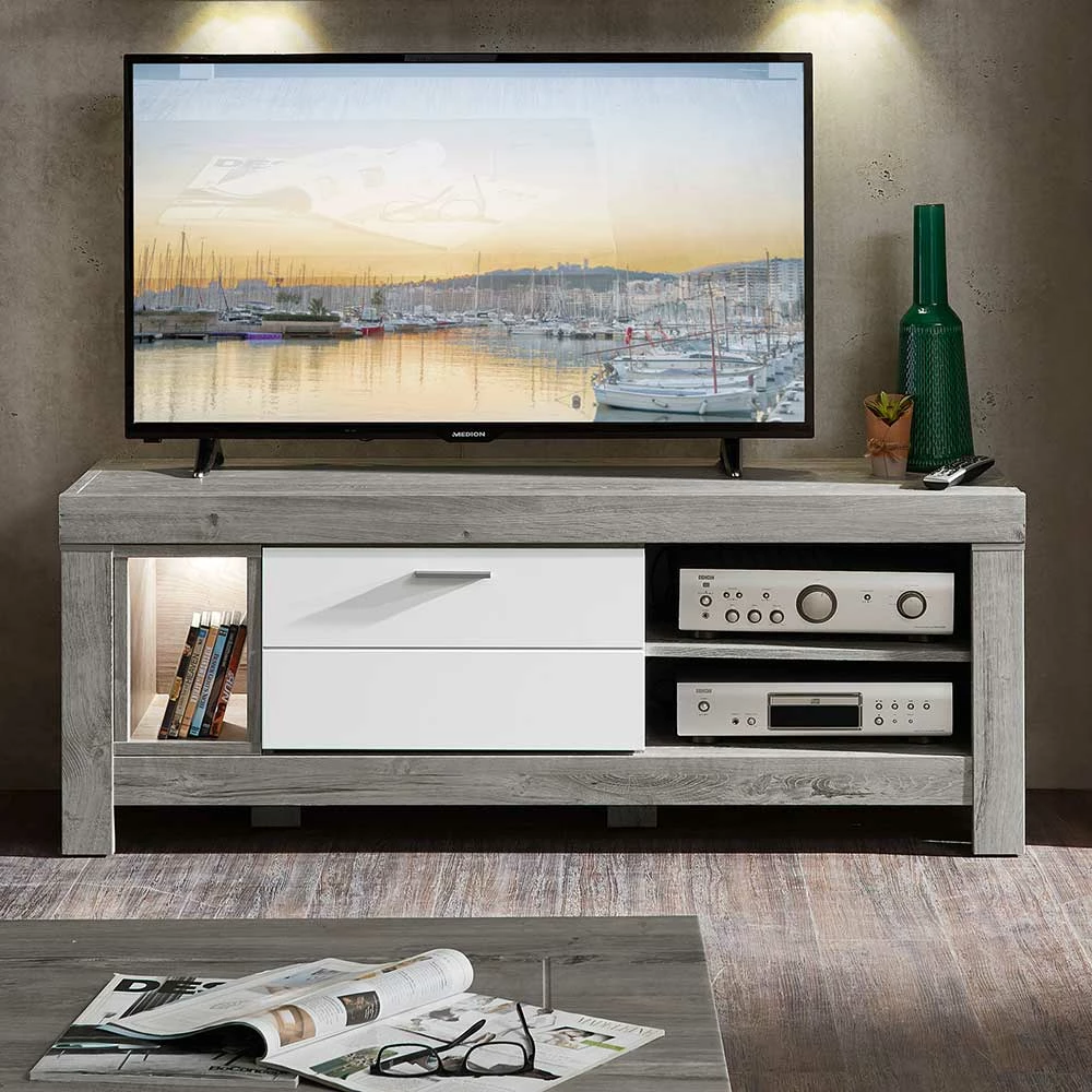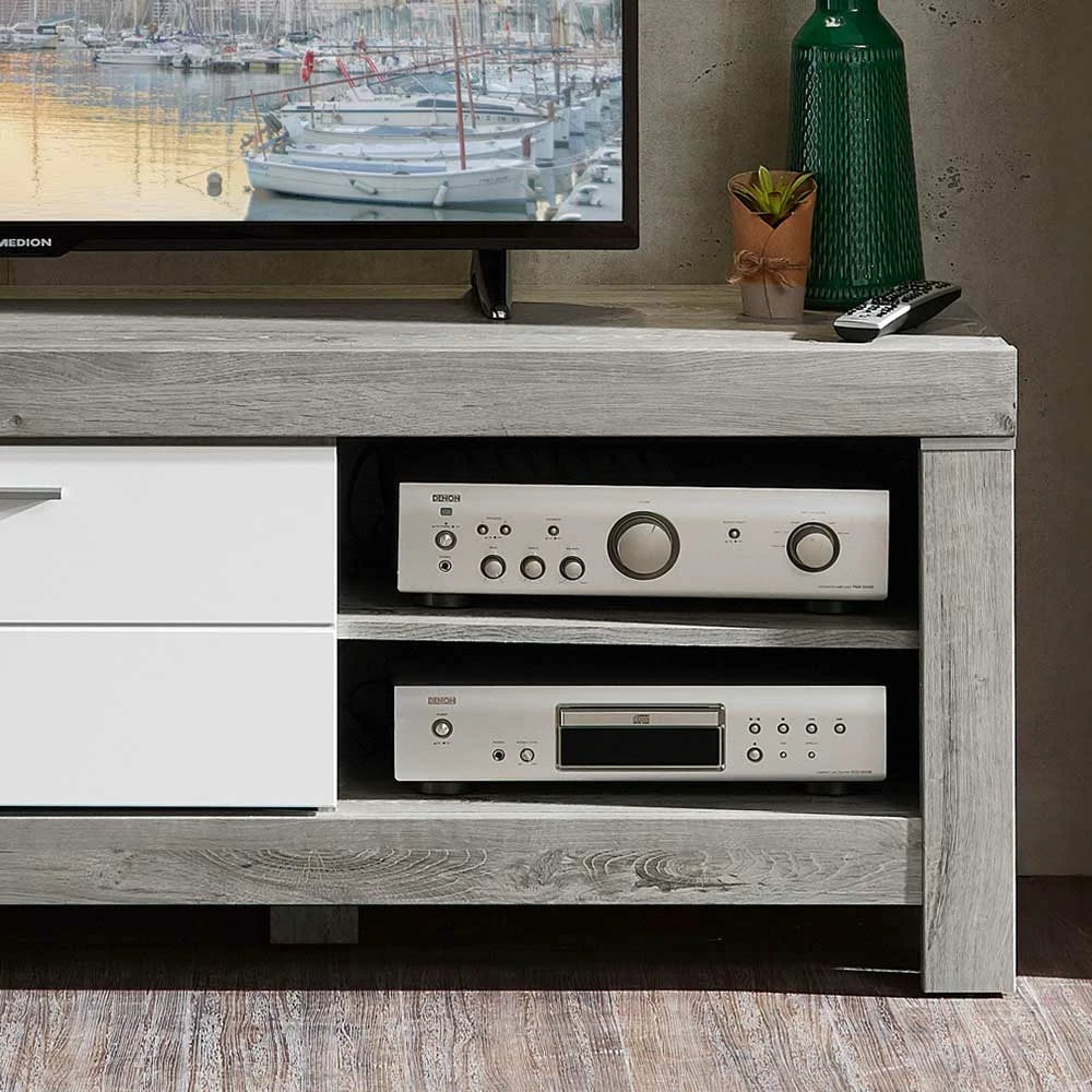 - Attraktives TV-Board in Weiß und Eiche dunkel