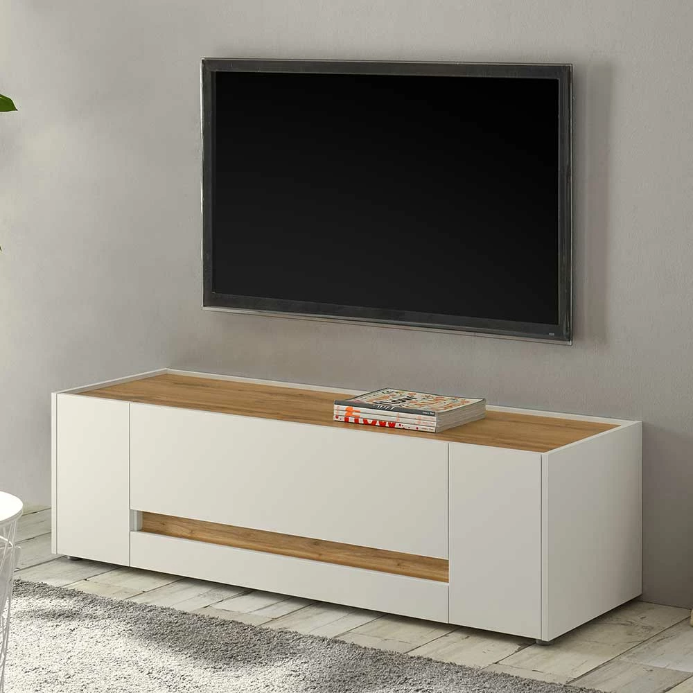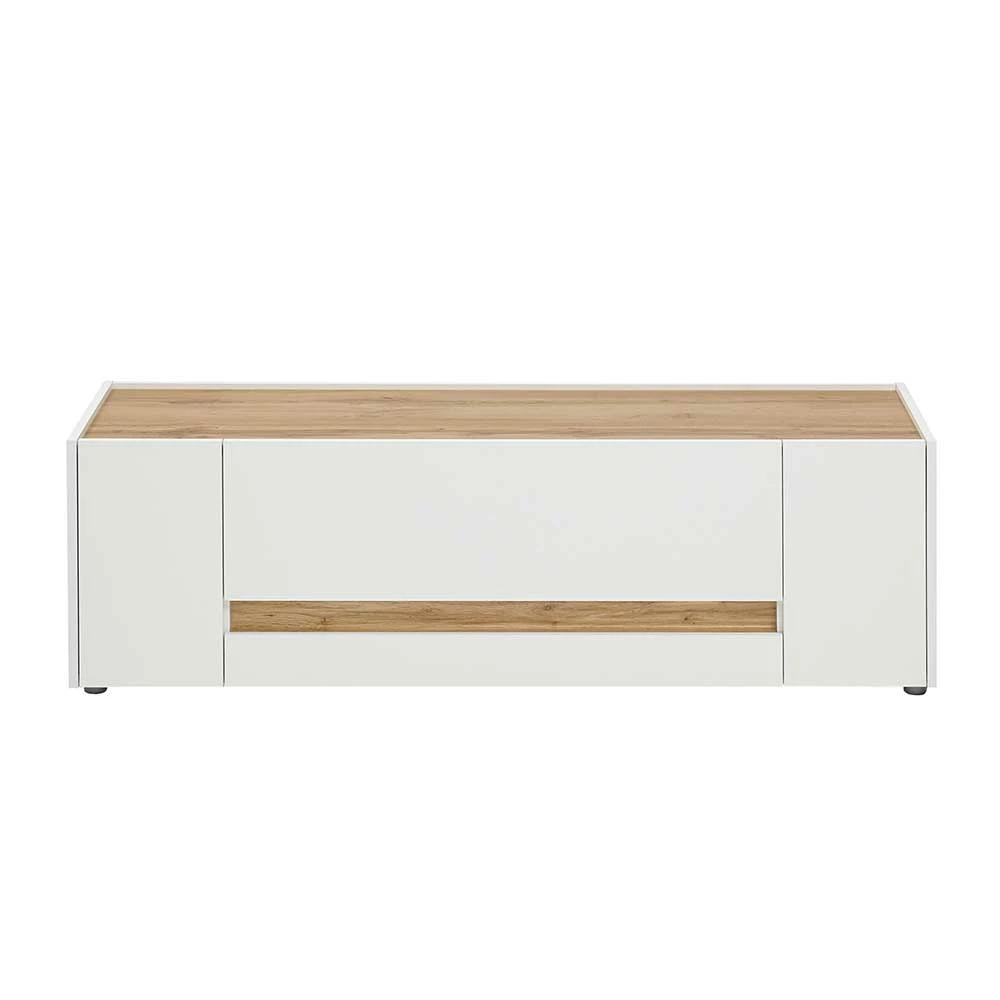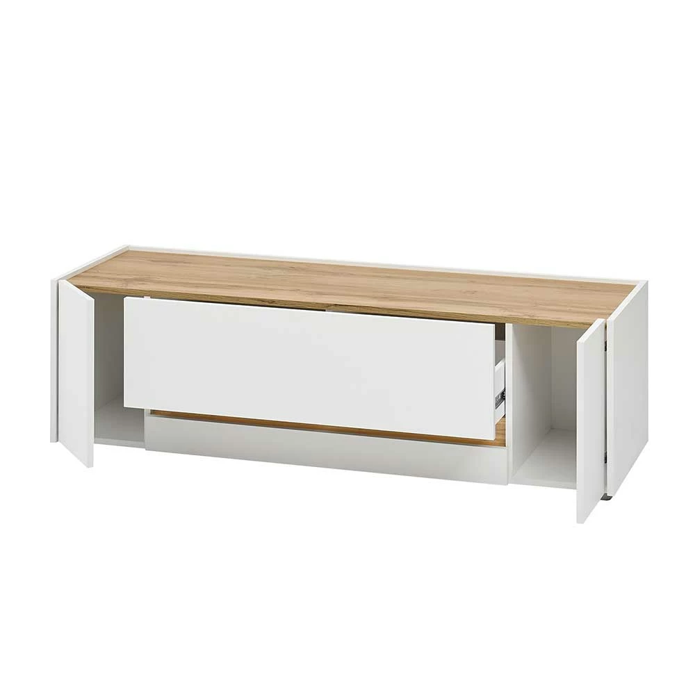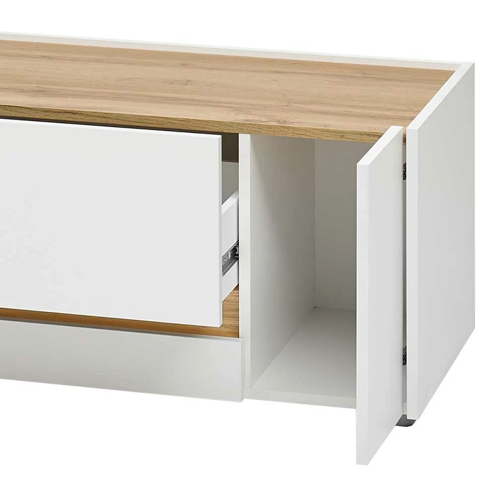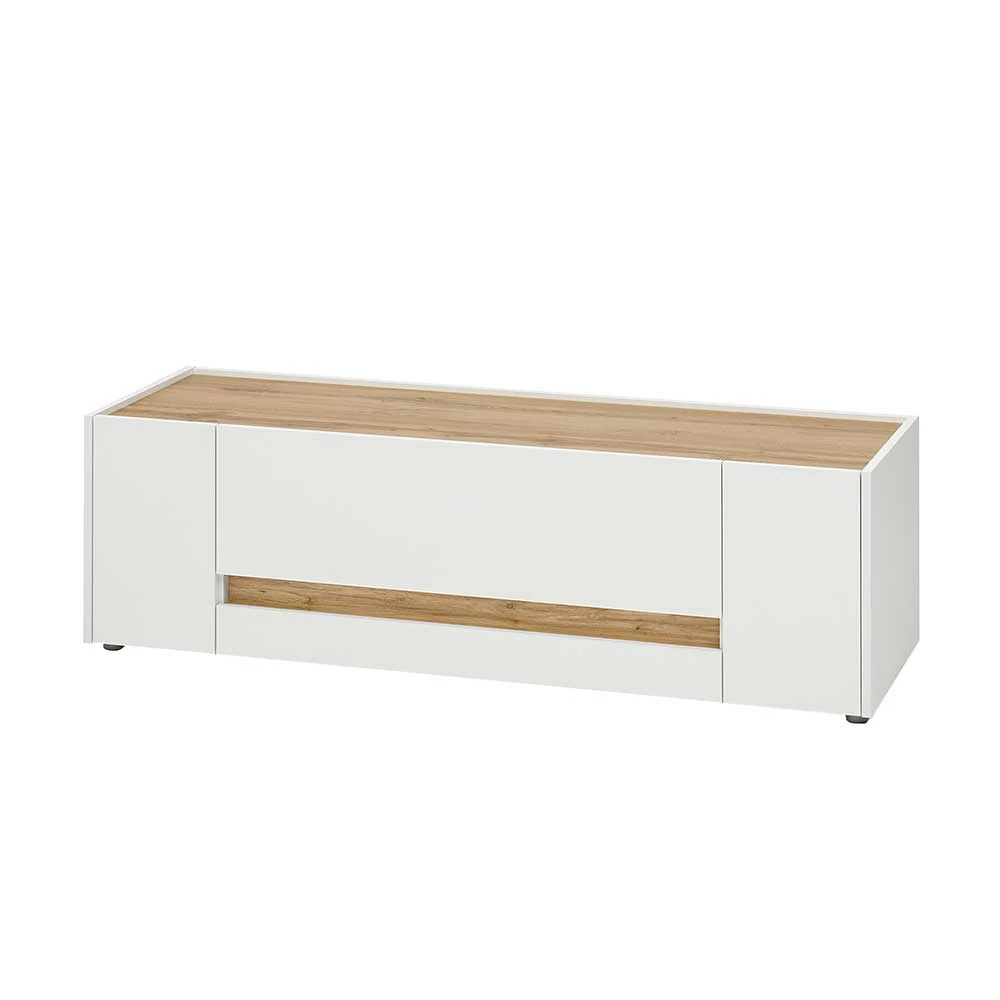 - Kompaktes TV-Lowboard in Weiß und Wildeichefarben