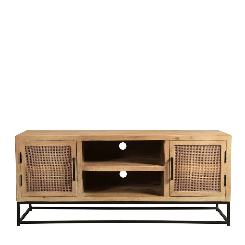 TV Lowboard Aus Massivholz & Rattan Geflecht – Lazianus