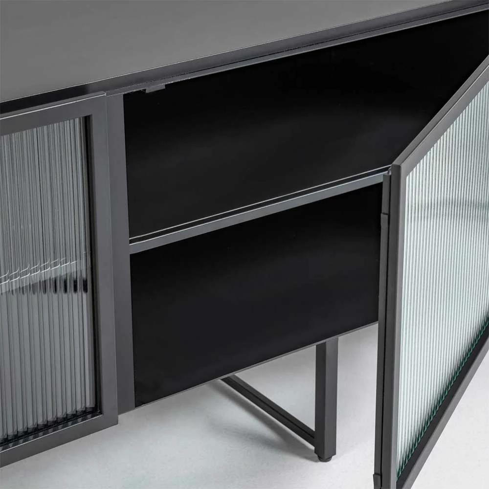 TV Lowboard Aus Stahl Schwarz & Glas – Galyferio