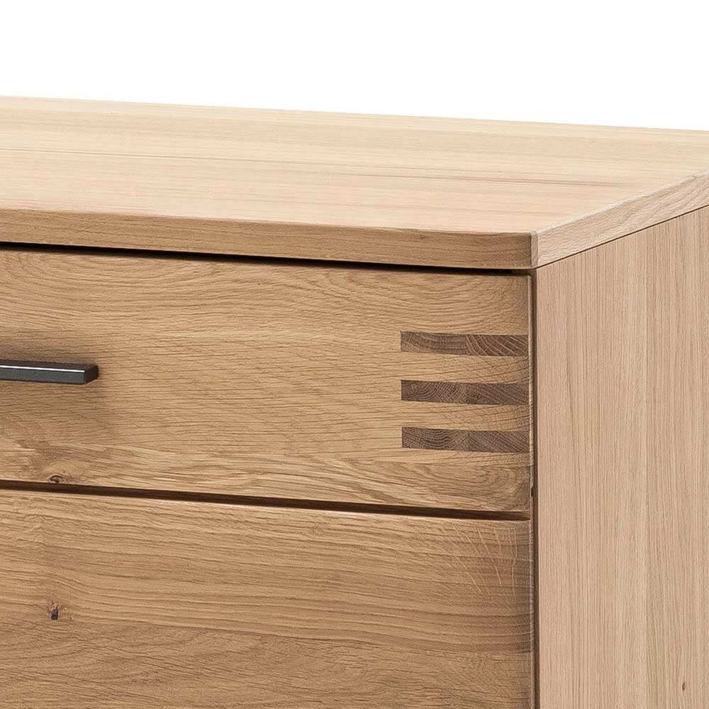 - Aus Balkeneiche Massivholz (Front) und Spanplatte (Korpus) gefertigt