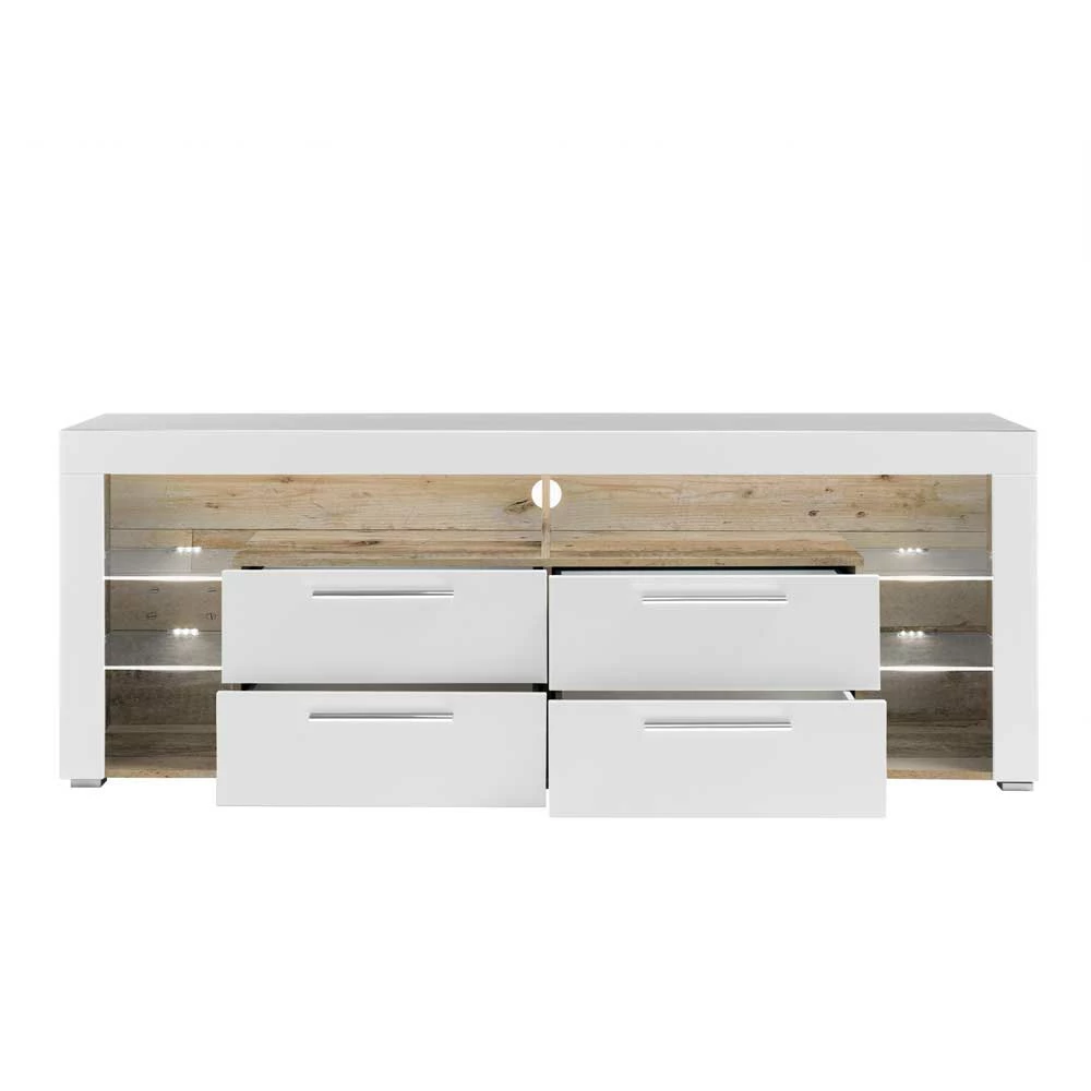 - Stylisches TV-Board in Weiß und Altholzoptik