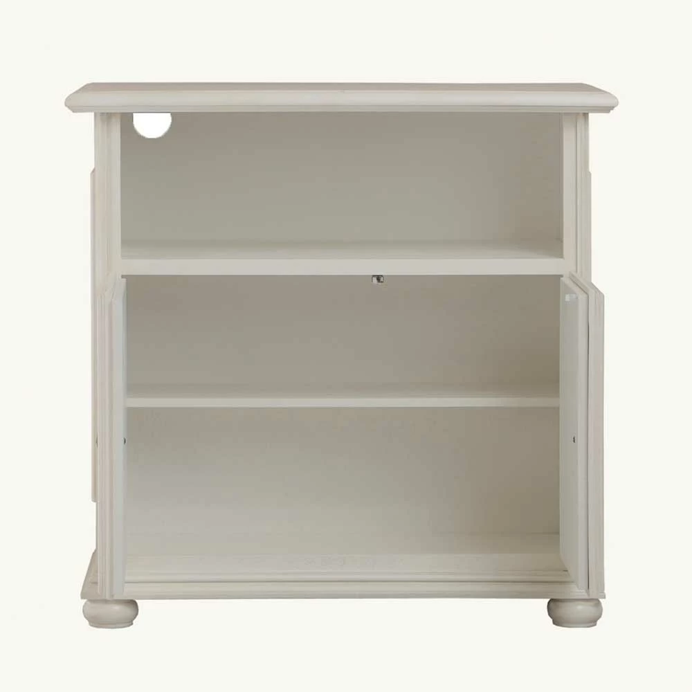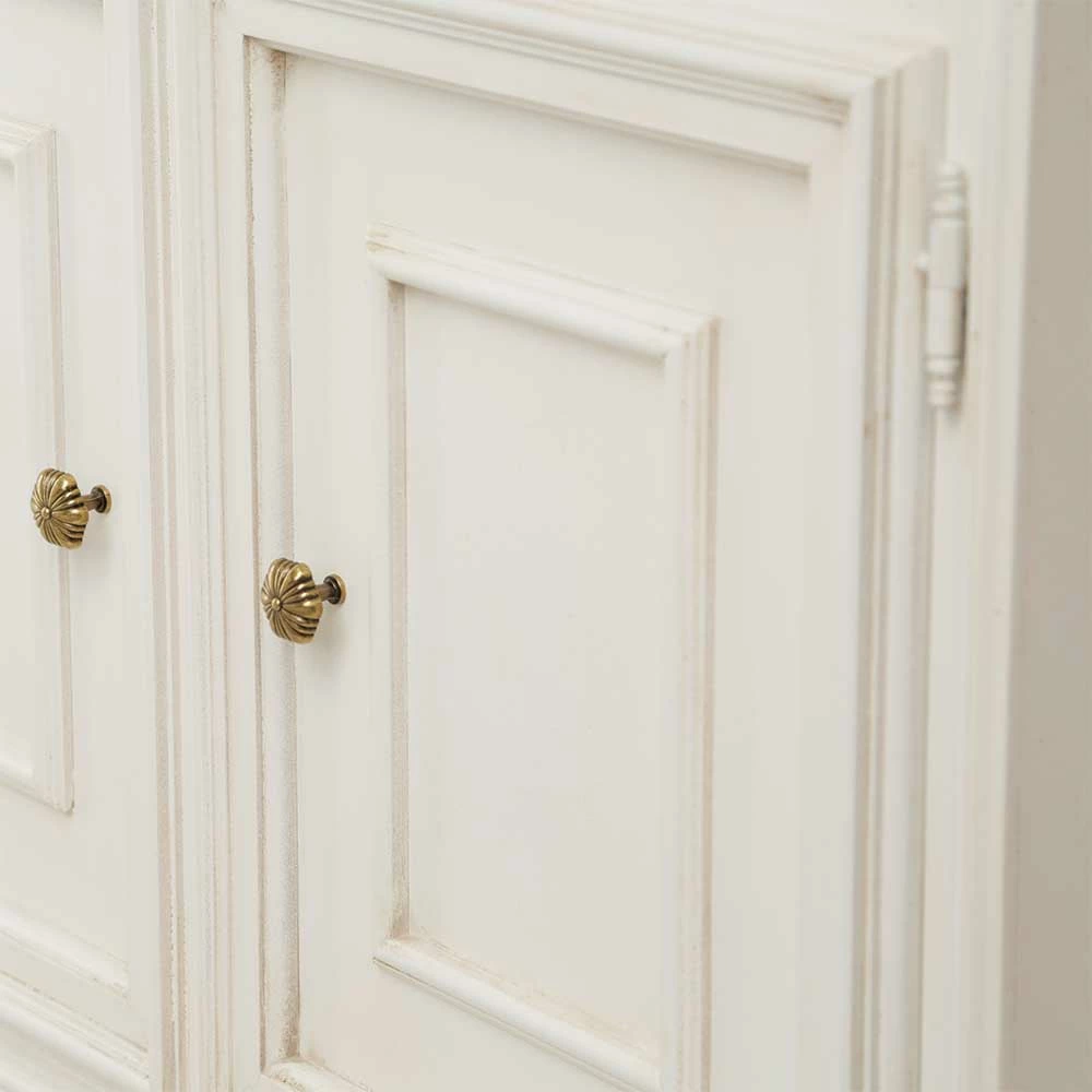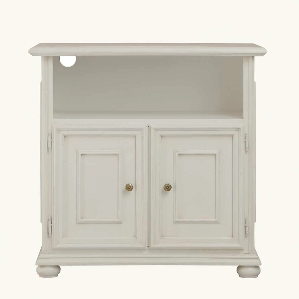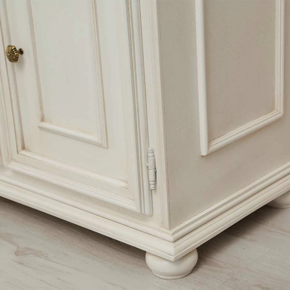 - Oberfläche furniert, antikweiß patiniert und von Hand lackiert