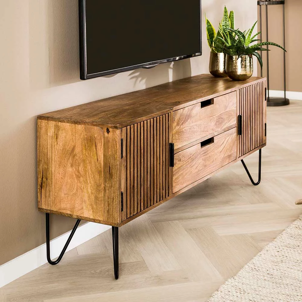 TV Unterschrank Aus Mangoholz In Sandfarben – Baina