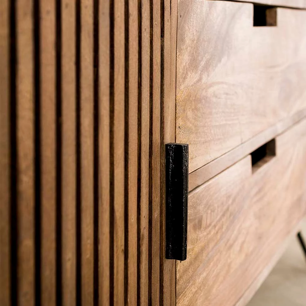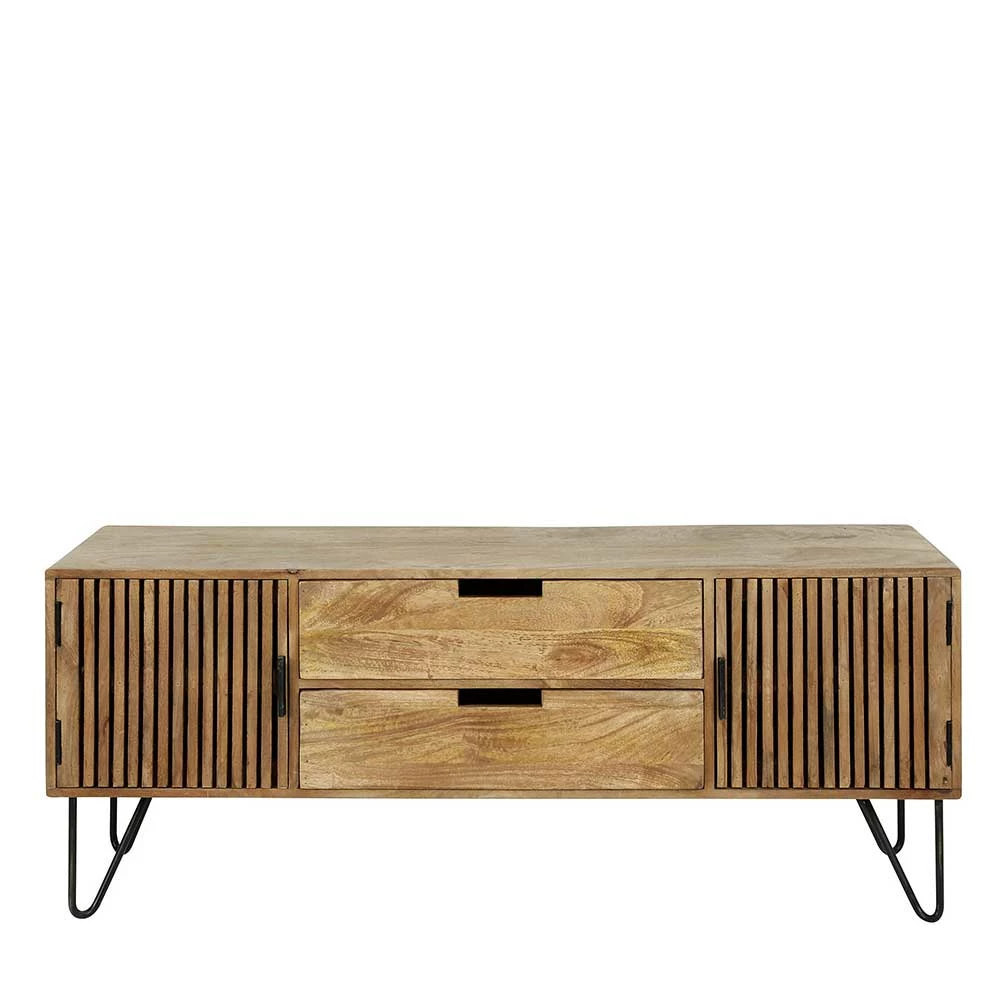 - Robustes Lowboard in Mangoholz Sand und Schwarz