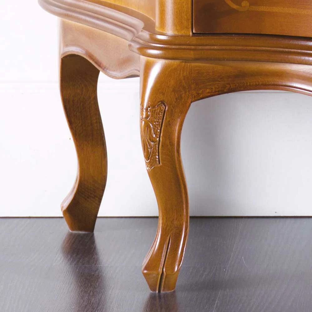 - Schön geschwungenes Untergestell, bestehend aus vier Massivholzbeinen, die mit dekorativen Schnitzereien verschönert sind