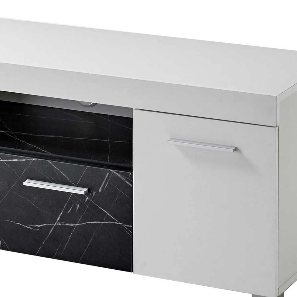 TV Unterschrank In Weiß & Anthrazit Stein Optik – Vaffonia
