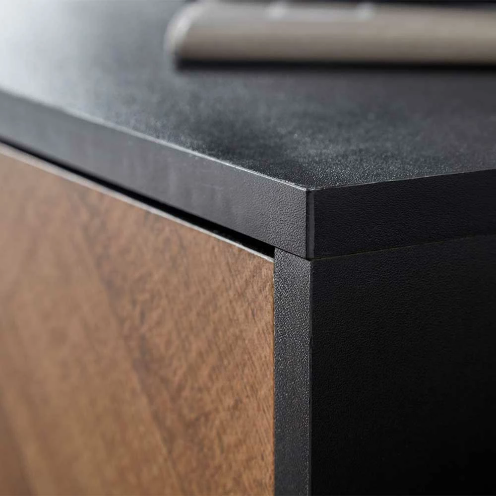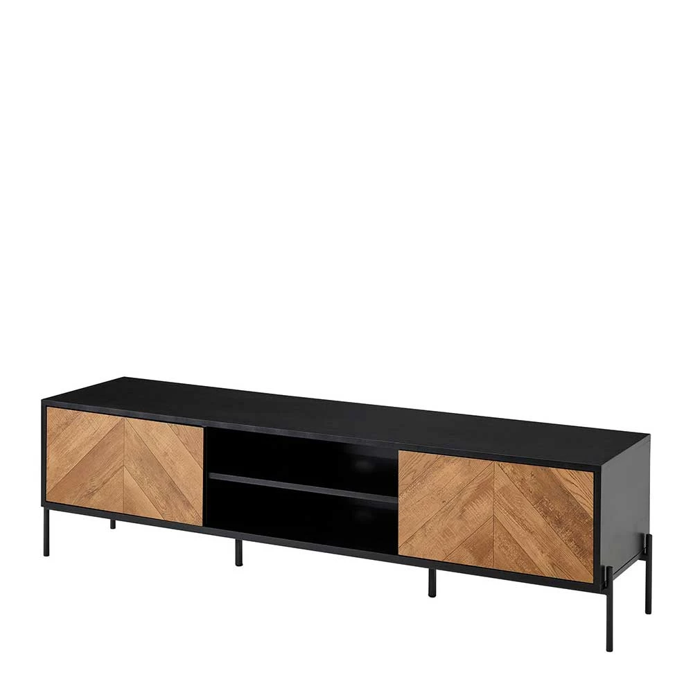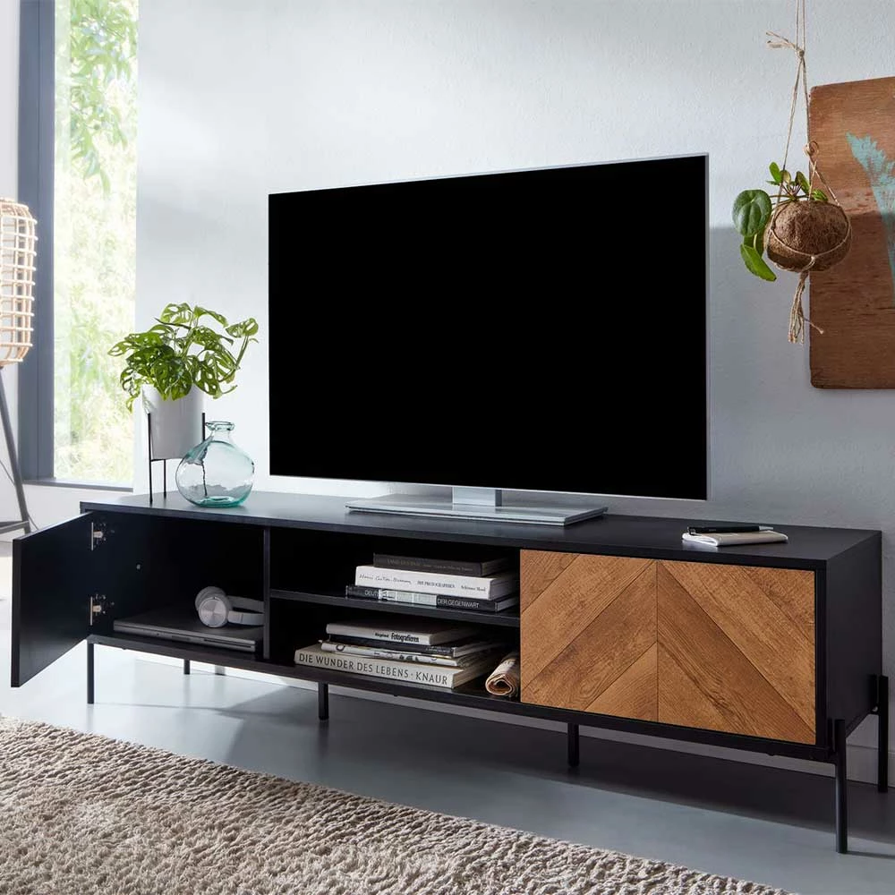 - Ansprechendes TV-Board in Eichefarben und Schwarz