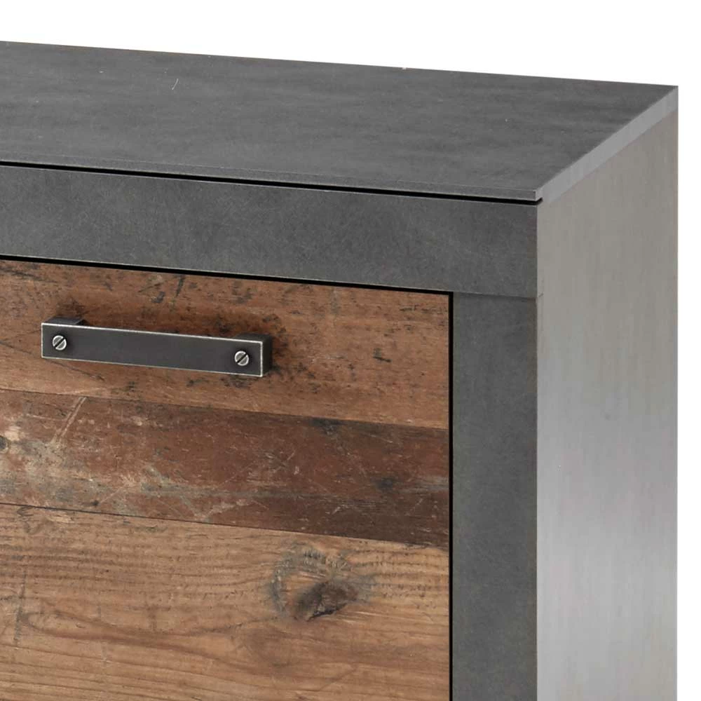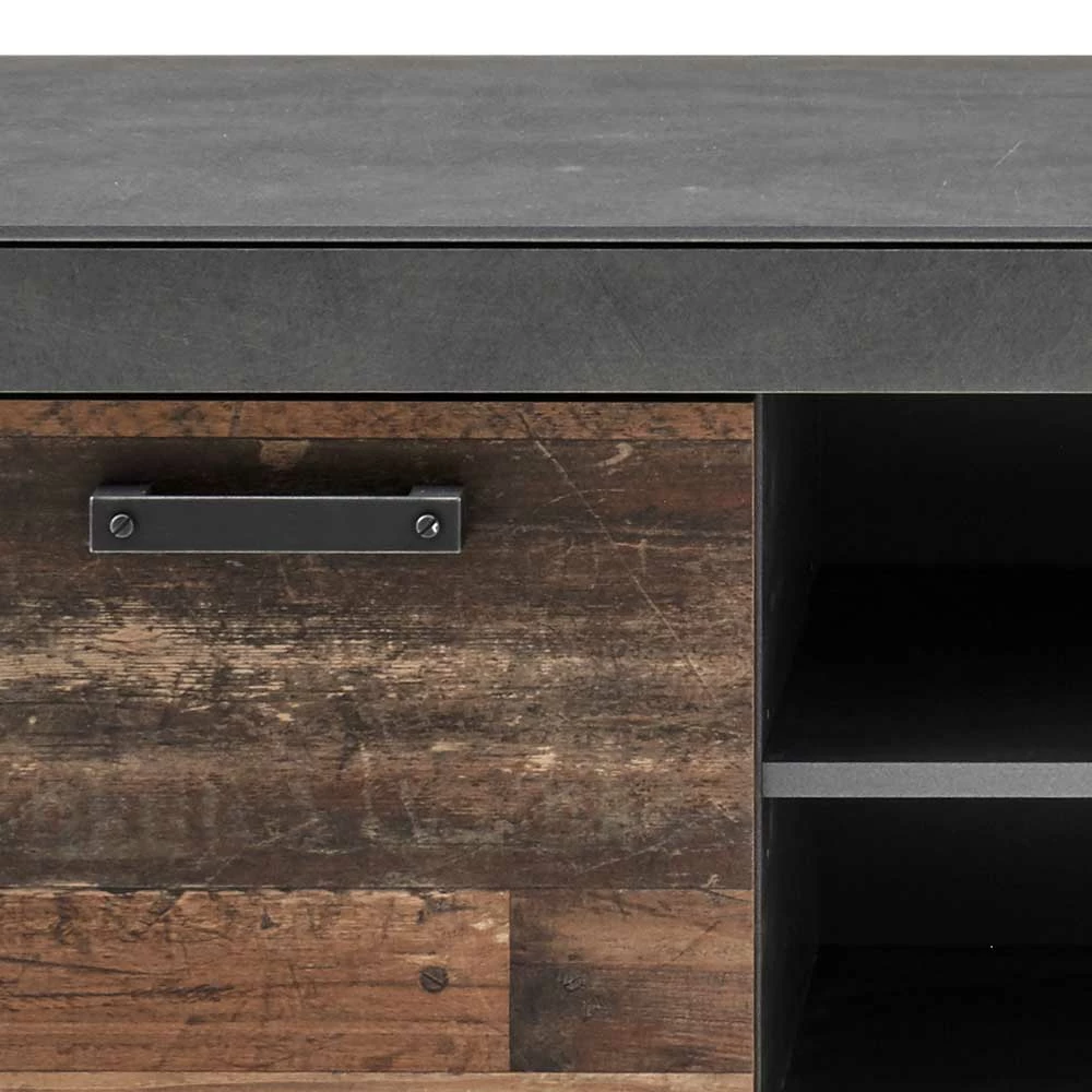 - Erstklassiges TV-Board in Dunkelgrau und Altholz Optik